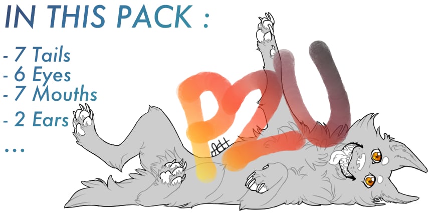 - Lineart + grey basecolor (Grey only for the base, the ears, the tails and the wing) on separate layers (.clip) and (.psd)
